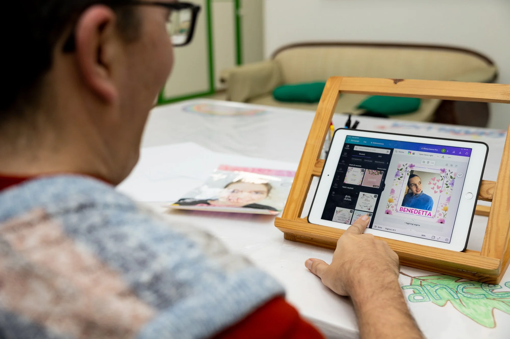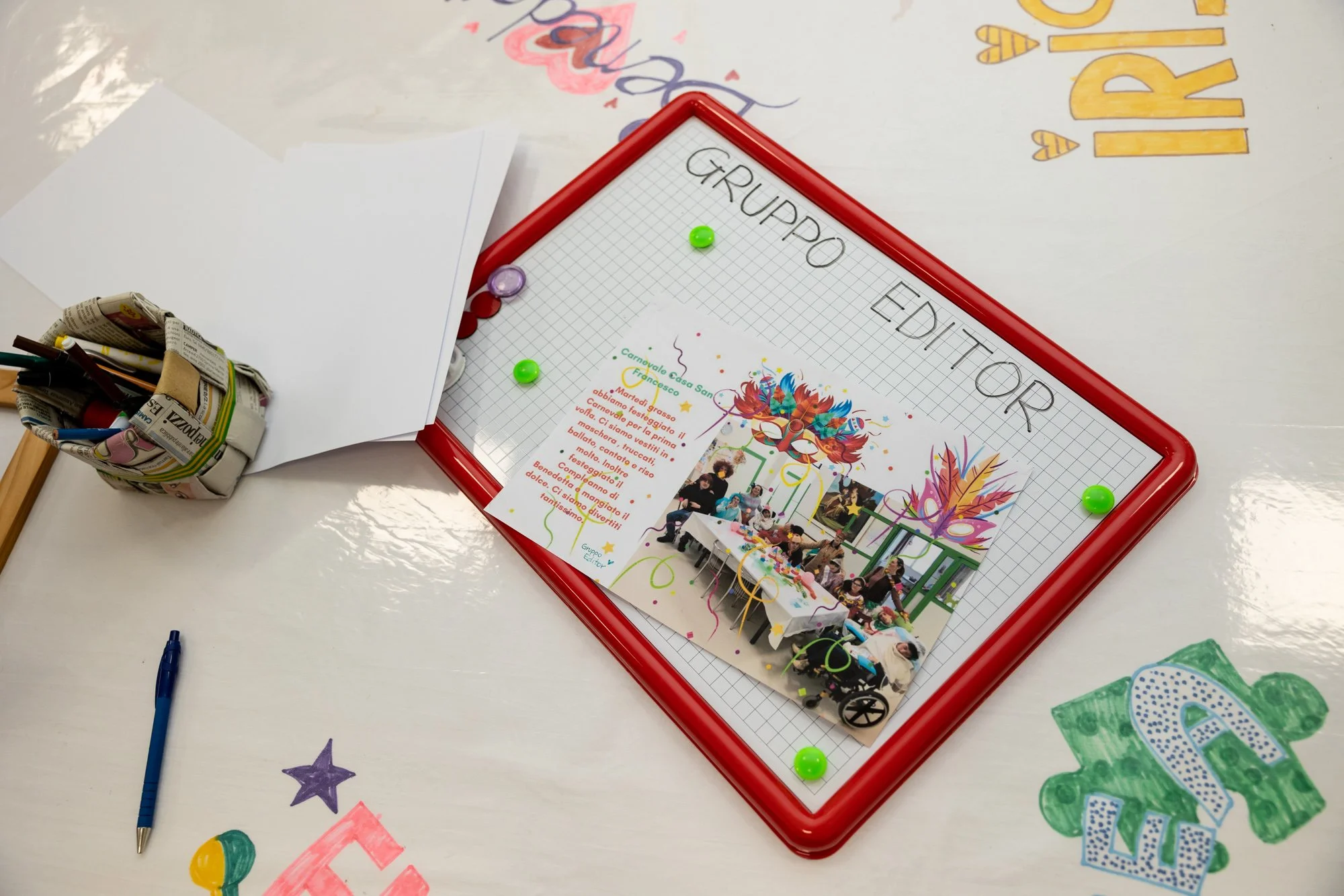 Lavorare in gruppo nel laboratorio offre la possibilità di favorire le strategie di “imparare assieme” centrate sulla costruzione a più mani di un prodotto finale che può essere utilizzato all’interno del Centro Diurno San Francesco ma anche all’esterno per comunicare con il territorio.